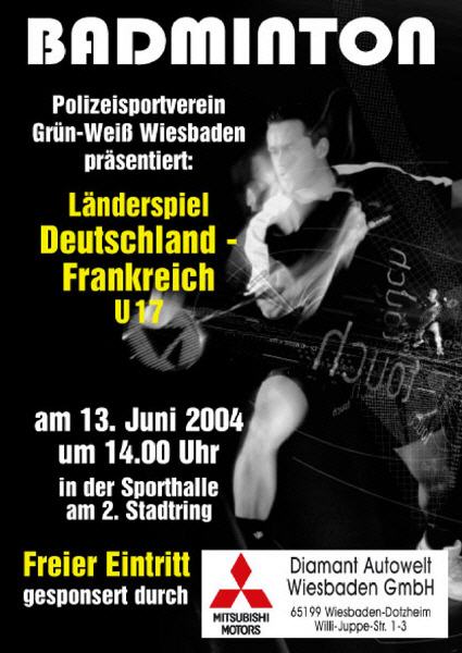 06.06.2004: Am Sonntag, dem 13. Juni treffen in Wiesbaden die U17-Mannschaften von Deutschland und Frankreich aufeinander. Der Eintritt ist frei. Weitere Details gibt es hier.